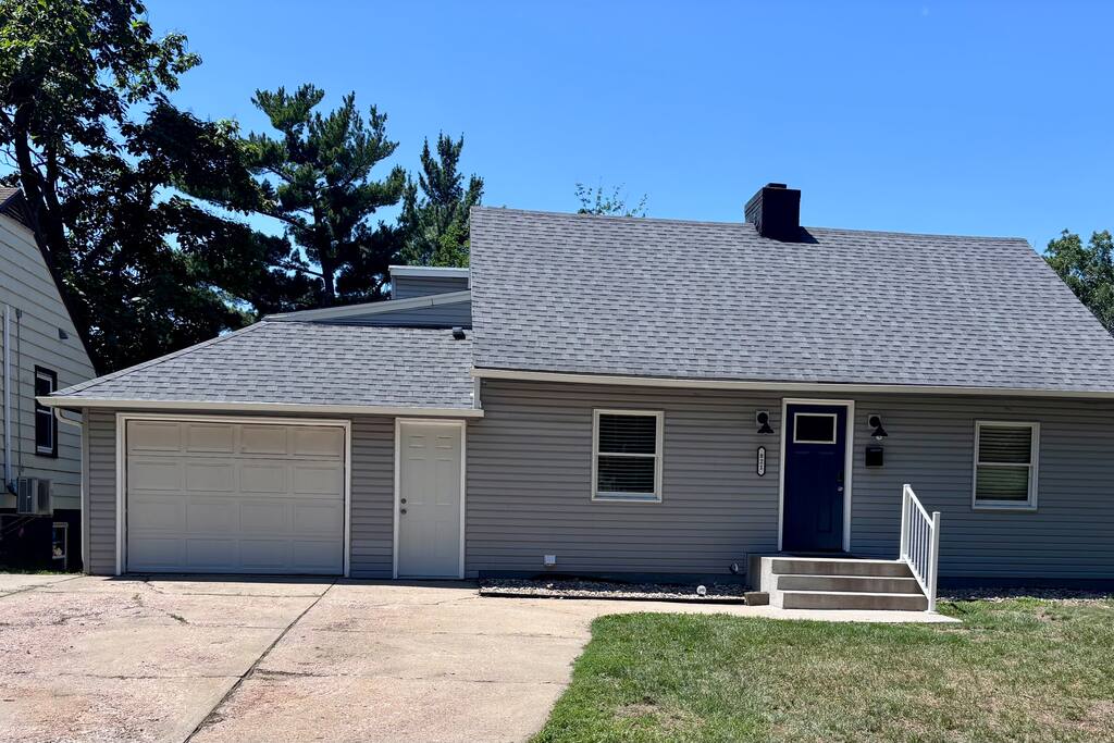 Welcome to your Sioux Falls retreat — a freshly renovated home that blends timeless character with modern comfort. Inside, you’ll find coastal-inspired décor and bright, open living spaces designed for relaxation and connection. The main floor features one bedroom, a half bath, and two spacious living areas with multiple cozy couches and two pull-out memory foam beds—ideal for families or groups looking to spread out. Upstairs, you’ll find three inviting bedrooms and two bathrooms. Each room includes a plush JUNA queen bed and ample closet space. The master bedroom has direct access to a private bathroom, and while one additional bedroom connects to the master, a divider ensures complete privacy. Perfectly located near downtown Sioux Falls, you’ll be just minutes from some of the city’s best dining, nightlife, and entertainment. Prefer a quiet night in? Enjoy Smart TVs for movie marathons, a foosball table, chess, board games, and plenty of books for a relaxing evening at home. Step outside to the fenced backyard and unwind in the peaceful outdoor dining area—ideal for morning coffee or evening gatherings. For longer stays, the unfinished lower level includes a washer and dryer for your convenience. **Hosts live offsite, so the entire property is yours to enjoy!**